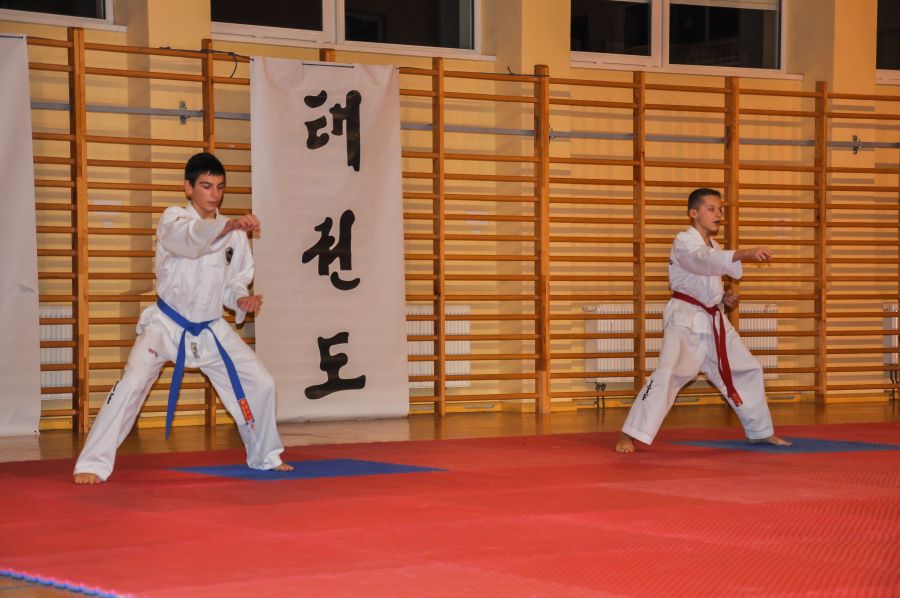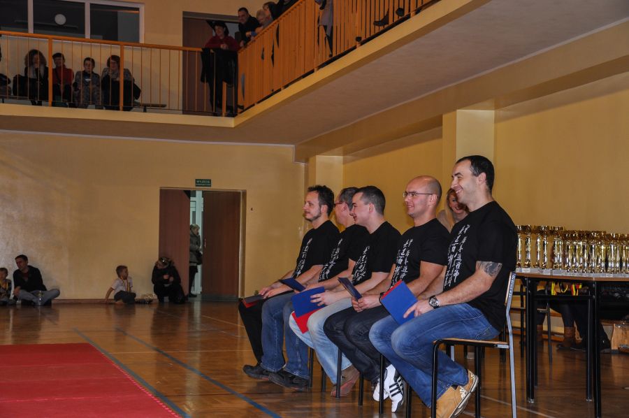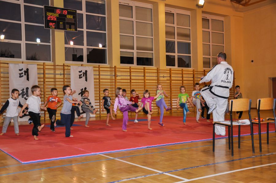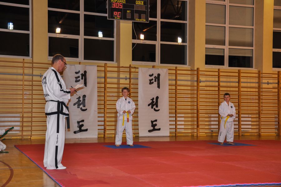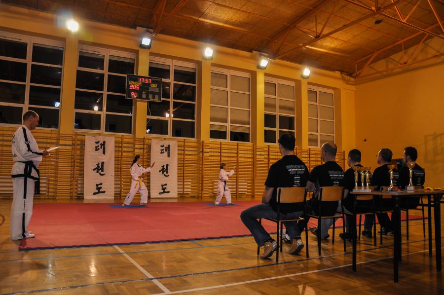 11 grudnia w Sali sportowej I LO w Lubnie odbyła się kolejna edycja Mistrzostw Lubina w Taekwon-do. Do rywalizacji w konkurencji układów zgłoszono 61 zawodników z 3 grup zaawansowanych. Oraz 43 adeptów Taekwon-do trenujących od września 2013 roku w dwóch grupach początkujących. Ci ostatni zaprezentowali swoje umiejętności nabyte przez trzymiesięczny okres szkolenia w formie, krótkiego pokazu. Wszyscy uczestnicy Mistrzostw otrzymali pamiątkowe koszulki, których projekt przygotował dwuosobowy zespół kierowany przez zawodnika naszego klubu Pawła Morawskiego. Paweł z kolegą pracują na co dzień w firmie Grid Design z Bournemouth w hrabstwie Dorset w Wielkiej Brytanii, ich autorstwa jest projekt nowej koszulki naszej Narodowej Reprezentacji Taekwon-do ITF. Starsi zawodnicy rywalizowali w konkurencji układów z podziałem na osiem grup, różniących się wiekiem i stopniem zaawansowania. Dla uatrakcyjnienia zawodów widzowie i najmłodsi adepci mogli obejrzeć, krótki pokaz w wykonaniu starszych kolegów, były układy indywidualne i drużynowe, kombinacje technik nożnych, prezentację zakończyła walka pokazowa w wykonaniu Marcina Półtoraka i Tomasza Golisa. Nad prawidłowym przebiegiem rywalizacji czuwała pięcioosobowa profesjonalna komisja sędziowska, która wyłoniła zwycięzców w poszczególnych grupach, zawodnicy plasujący się na miejscach I-III otrzymali pamiątkowe puchary i dyplomy.