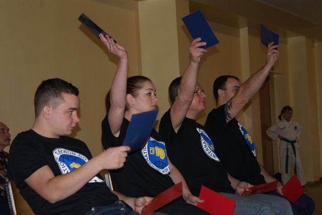 Zawody sędziowali zawodnicy grupy zaawansowanej, licencjonowani sędziowie PZTKD.