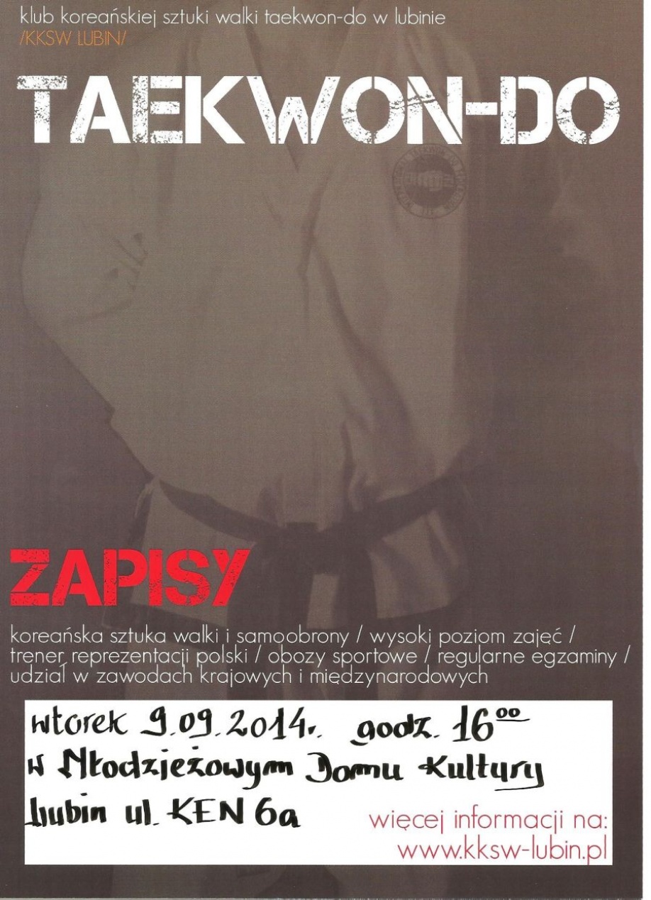 Zapisy do grup początkujących odbędą się 9.09.2014r. (wtorek) w Młodzieżowym Domu Kultury w Lubinie o godzinie 16.00.