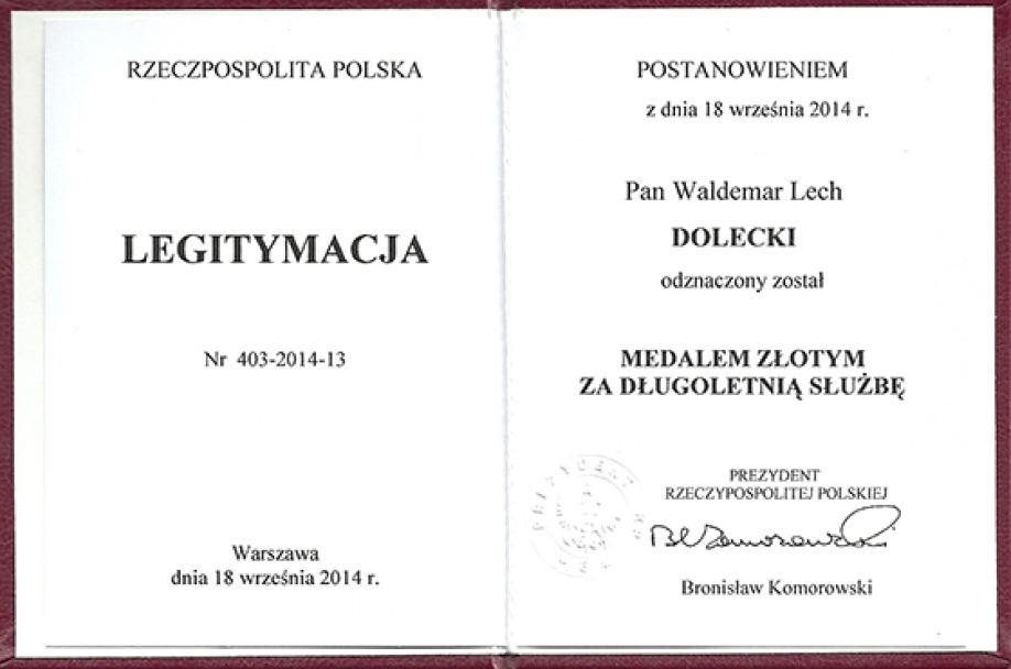 Medal Złoty dla Trenera za Długoletnią Służbę