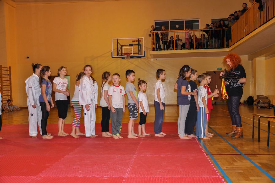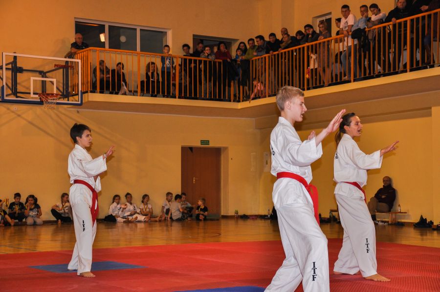 11 grudnia w Sali sportowej I LO w Lubnie odbyła się kolejna edycja Mistrzostw Lubina w Taekwon-do. Do rywalizacji w konkurencji układów zgłoszono 61 zawodników z 3 grup zaawansowanych. Oraz 43 adeptów Taekwon-do trenujących od września 2013 roku w dwóch grupach początkujących. Ci ostatni zaprezentowali swoje umiejętności nabyte przez trzymiesięczny okres szkolenia w formie, krótkiego pokazu. Wszyscy uczestnicy Mistrzostw otrzymali pamiątkowe koszulki, których projekt przygotował dwuosobowy zespół kierowany przez zawodnika naszego klubu Pawła Morawskiego. Paweł z kolegą pracują na co dzień w firmie Grid Design z Bournemouth w hrabstwie Dorset w Wielkiej Brytanii, ich autorstwa jest projekt nowej koszulki naszej Narodowej Reprezentacji Taekwon-do ITF. Starsi zawodnicy rywalizowali w konkurencji układów z podziałem na osiem grup, różniących się wiekiem i stopniem zaawansowania. Dla uatrakcyjnienia zawodów widzowie i najmłodsi adepci mogli obejrzeć, krótki pokaz w wykonaniu starszych kolegów, były układy indywidualne i drużynowe, kombinacje technik nożnych, prezentację zakończyła walka pokazowa w wykonaniu Marcina Półtoraka i Tomasza Golisa. Nad prawidłowym przebiegiem rywalizacji czuwała pięcioosobowa profesjonalna komisja sędziowska, która wyłoniła zwycięzców w poszczególnych grupach, zawodnicy plasujący się na miejscach I-III otrzymali pamiątkowe puchary i dyplomy.