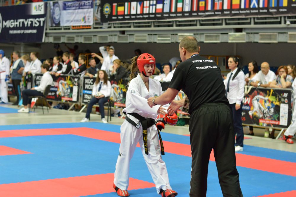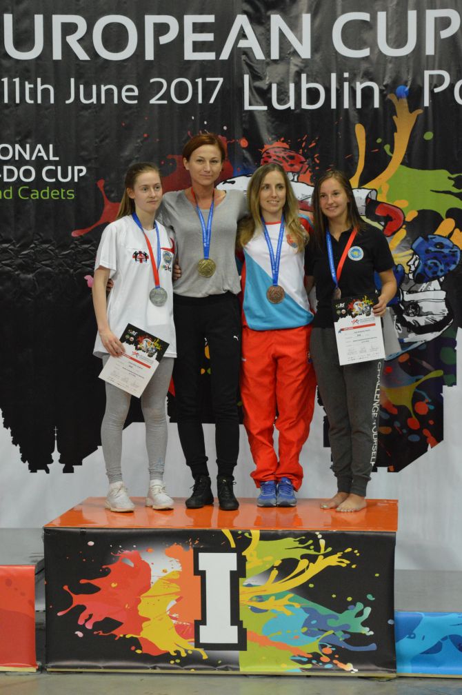 Trzeci dzień rywalizacji przyniósł naszej skromnej reprezentacji medal z najcenniejszego kruszcu. Katarzyna Żołędziewska-Jężak zajęła pierwsze miejsce w walkach seniorek w wadze do 50 kg. Jest to kolejny międzynarodowy sukces Pani Katarzyny, w jej bogatym sportowym dorobku. Mistrzyni nie tylko reprezentuje nasz klub jako zawodniczka. W trakcie trwania Pucharu otrzymała powołanie jako sędzia na Mistrzostwa Świata Seniorów i Juniorów w Taekwon-do, które odbędą się w październiku w stolicy Irlandii, Dublinie.