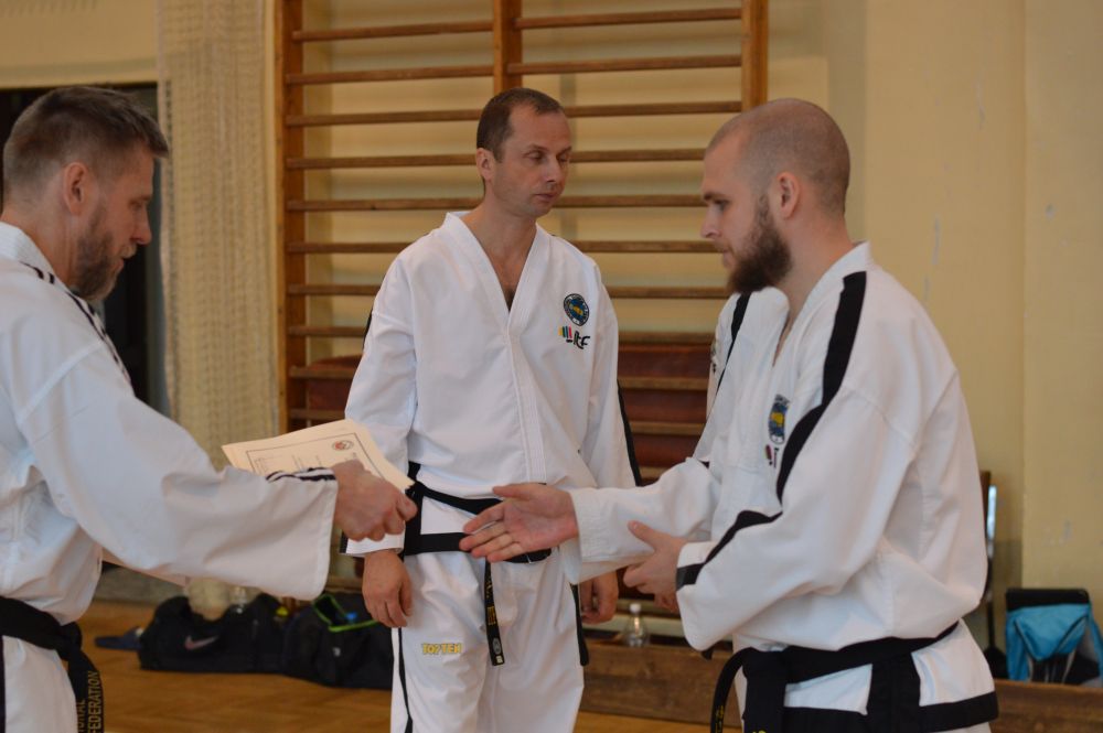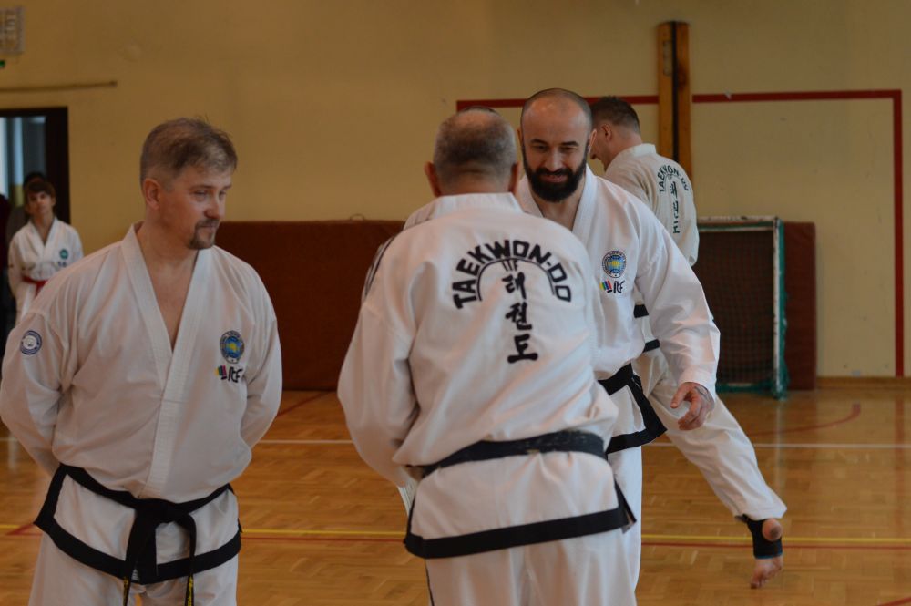 Nasz klub reprezentowany był przez czterech głodnych wiedzy fanów koreańskiej sztuki walki. Prowadzącym szkolenie był Mistrz Jerzy Jedut VIII Dan, asystował mu Mistrz Wojciech Zdanuczyk VII Dan. Doskonalone były układy oraz walki na 1,2 i 3 kroki. Kolejne podobne spotkanie będzie miało miejsce we Wrocławiu w lutym 2019 roku.
