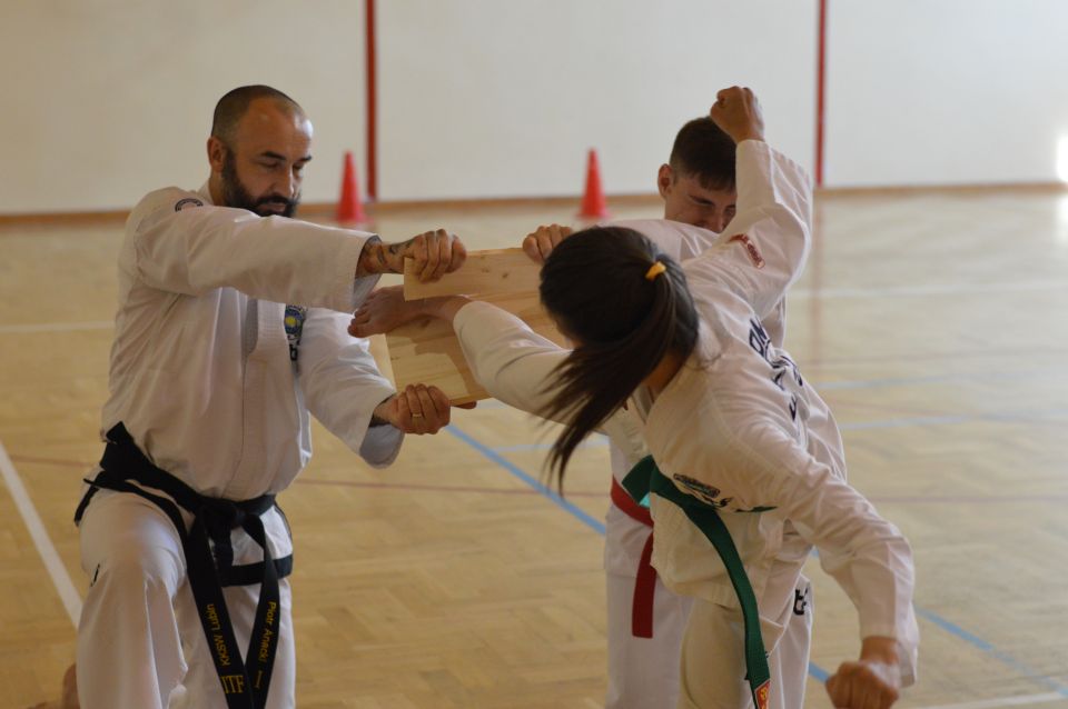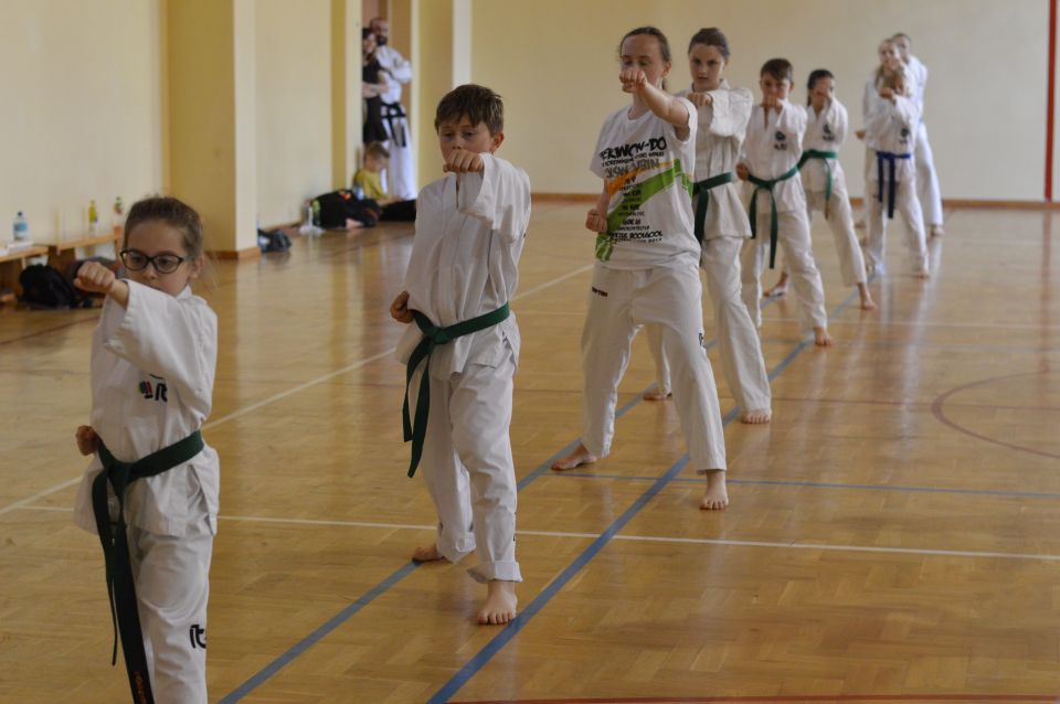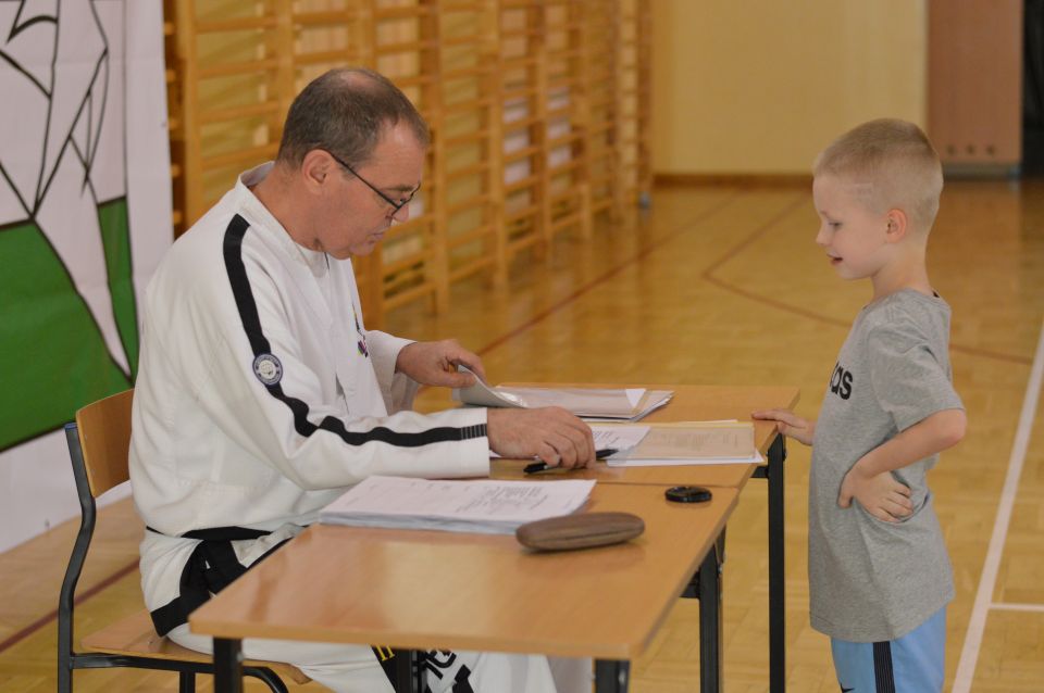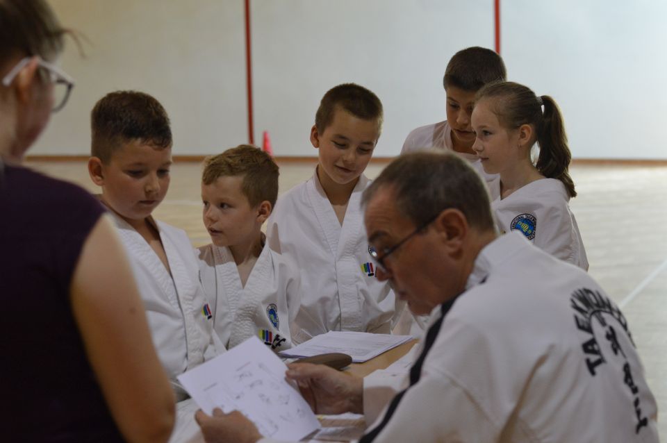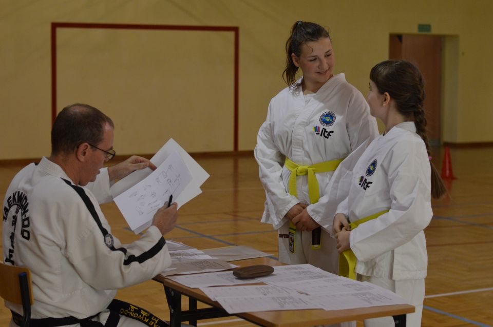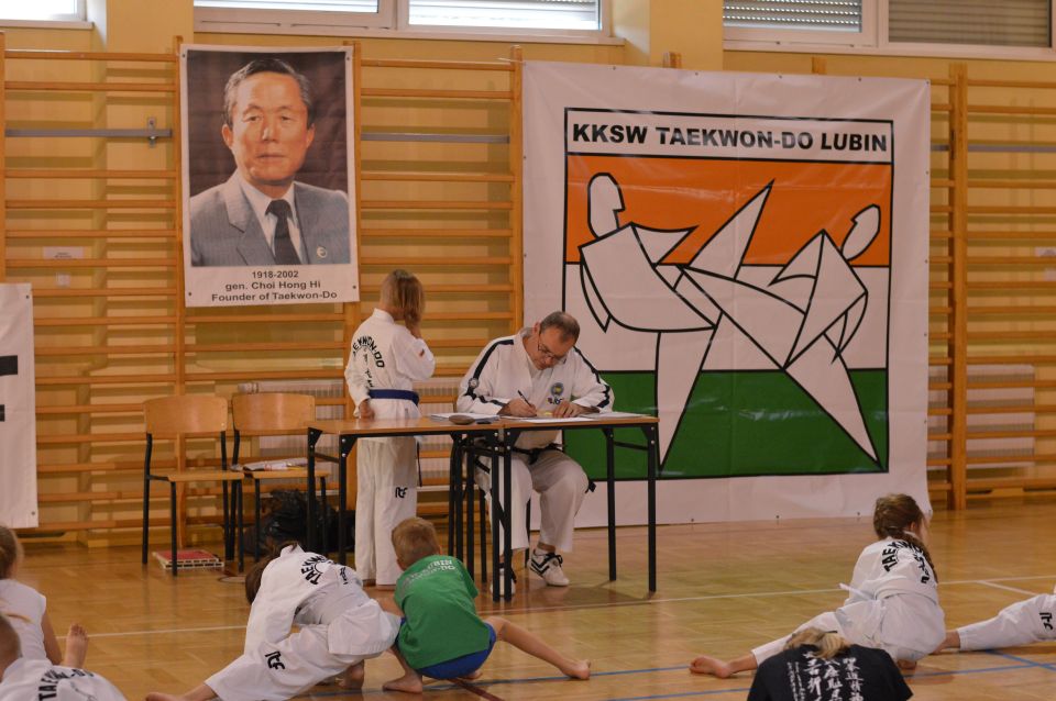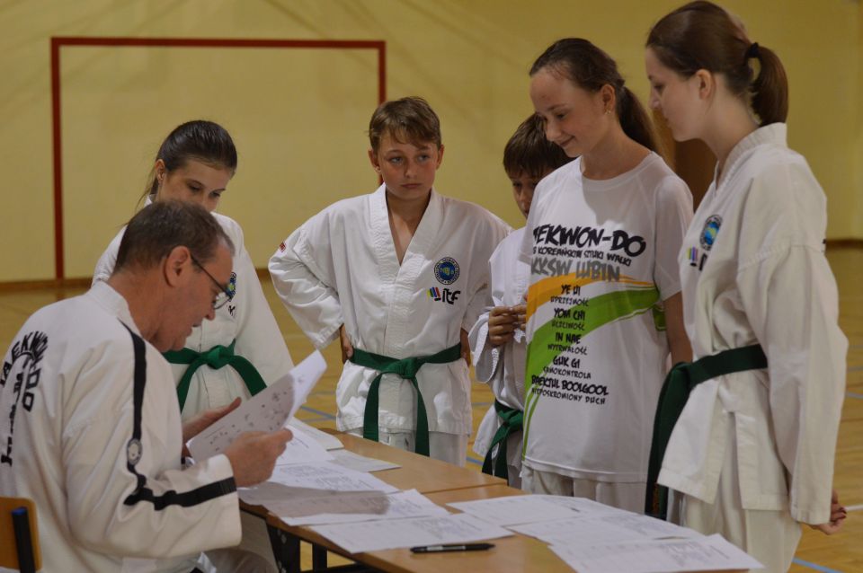 Zdający musieli wykazać się znajomością układów , technik podstawowych, kopnięć. Zaprezentowali walkę na trzy, dwa i jeden krok, techniki samoobrony. Najstarsi rozbijali deski. Ostatnim punktem egzaminu dla wszystkich uczestników była część teoretyczna dotycząca wiedzy na temat historii Taekwon-do, oraz szczegółowe pytania o kąty ustawienia stóp, rozłożenie ciężaru ciała, powierzchnie atakujące i blokujące. Czyli znajomość szczegółów technik Taekwon-do i umiejętność opisania sposobu ich wykonania. Po przejściu wszystkich etapów sprawdzianu, awans na wyższy stopień szkoleniowy otrzymało 30 zawodników. Dla najmłodszych egzamin trwał około 45 minut, najstarsi spędzili w sali I LO w Lubinie 3 godziny.