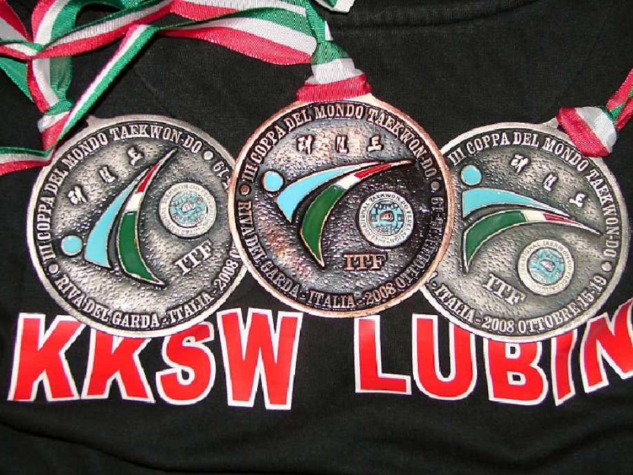 1136 zawodników z 45 krajów reprezentujących, 132 drużyny w tym kilka Reprezentacji Narodowych, 3 medale dla KKSW Lubin to liczby tegorocznego Pucharu Świata odbywającego się w przepięknej włoskiej, miejscowości Riva del Garda. Dolny Śląsk, w jego skład wchodziło dwóch naszych zawodników, zajął w klasyfikacji medalowej bardzo wysokie 3. miejsce, co było ogromnym zaskoczeniem dla wszystkich. Wszystkie krążki dla lubińskiego klubu zdobył Gaweł Szczęsny (walki indywidualne do 63kg, drużynowe walki, drużynowe układy).W dalszej części newsa przedstawiamy szczegółowy opis przebiegu zawodów.